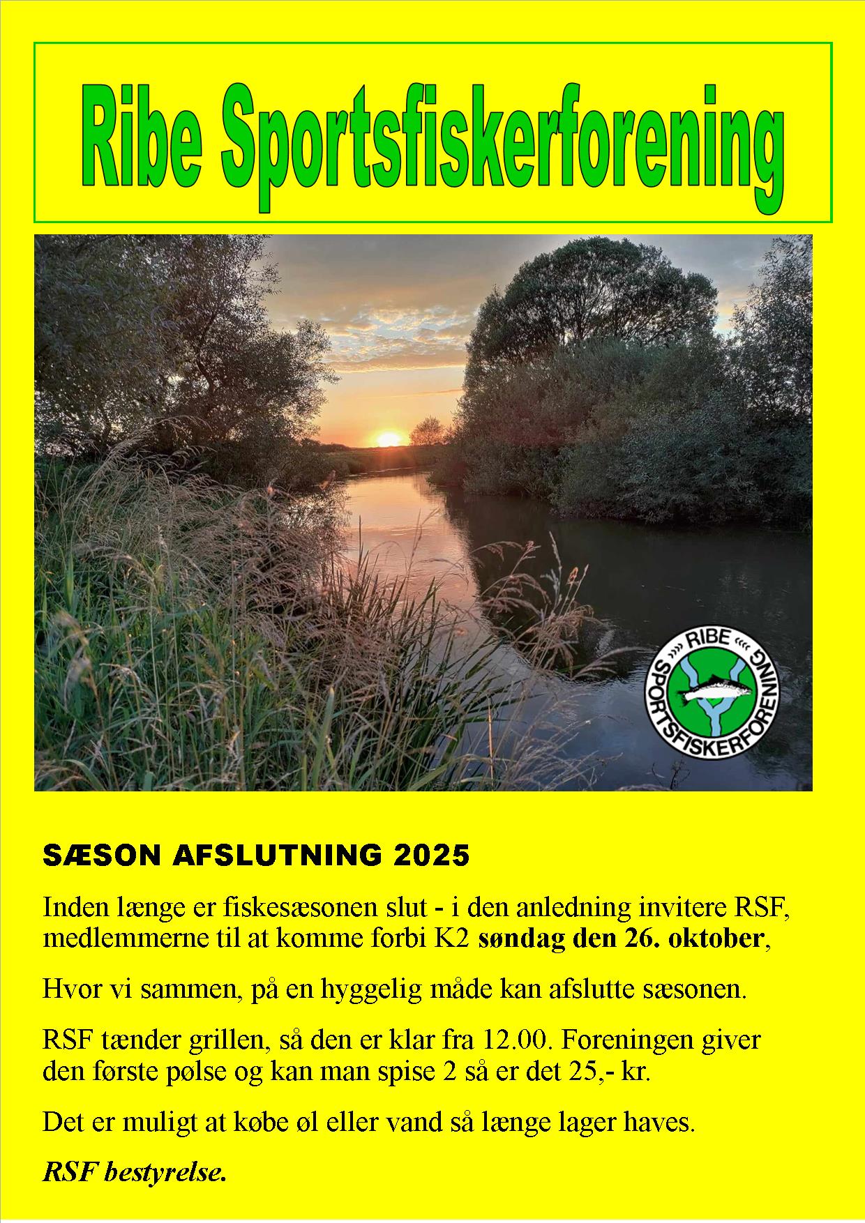 Inden længe er fiskesæsonen slut – i den anledning invitere RSF, medlemmerne til at komme forbi K2 søndag den 26. oktober,