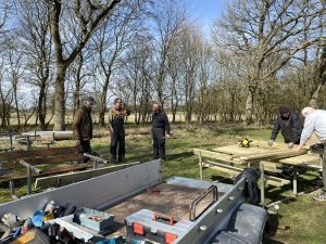 Der var en god tilslutning, ved klargøringen af K2 inden sæson start. Det gik rigtig fint, med klargøringen. Pigerne klarede rigtig flot alt det indendørs arbejde og de andre udskiftede brædder på bord og bænke sættene eller reparerede gangbroer. Generelt en rigtig hyggelig dag, hvor der blev afsluttet med lidt grill mad.