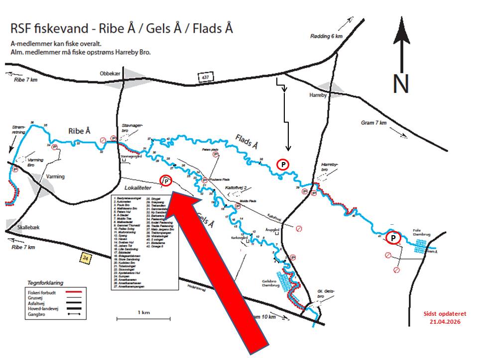P-pladsen ligger på sydsiden af Gelså næsten lige over for den nye Amerikanerspang.