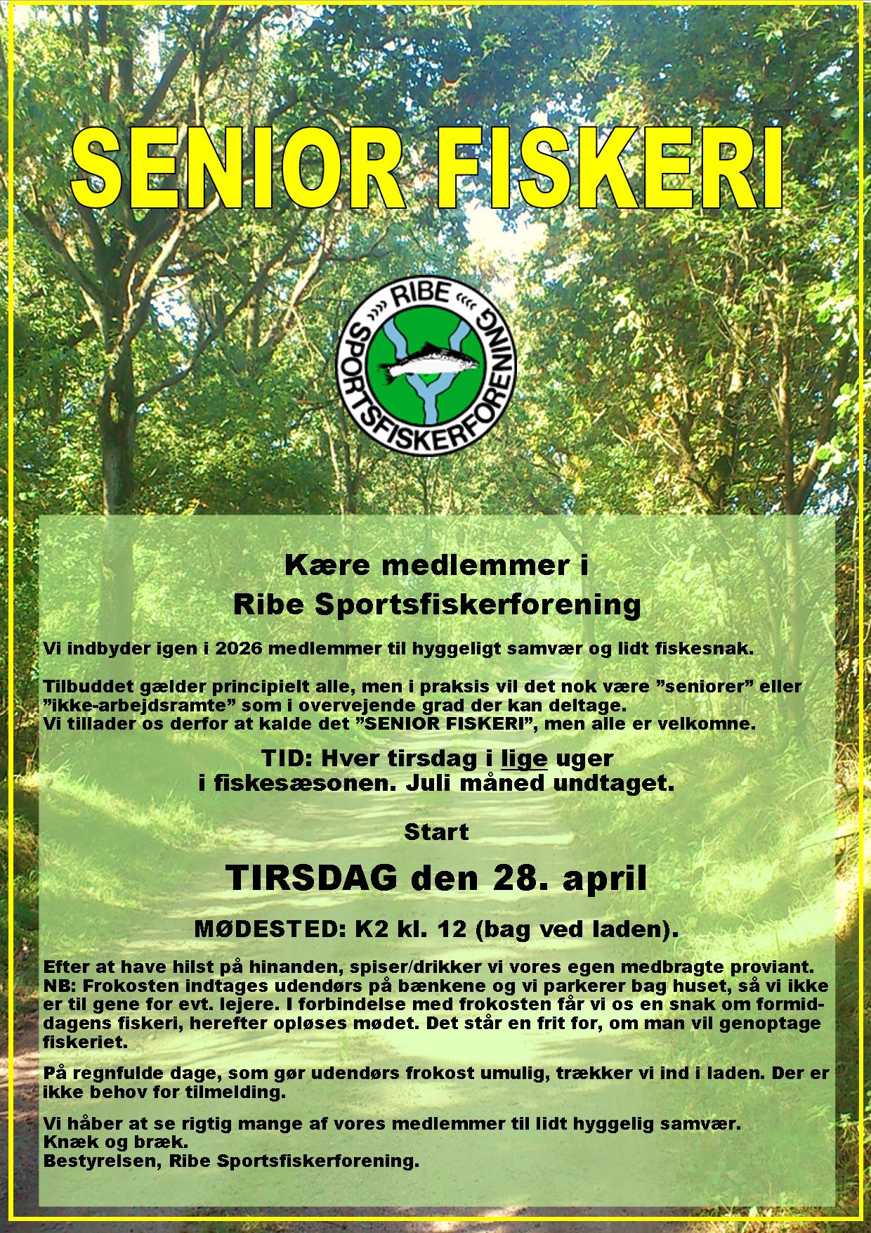 Tradition tro starter vi Senior fiskeri igen i år – Tirsdag den 28. april
